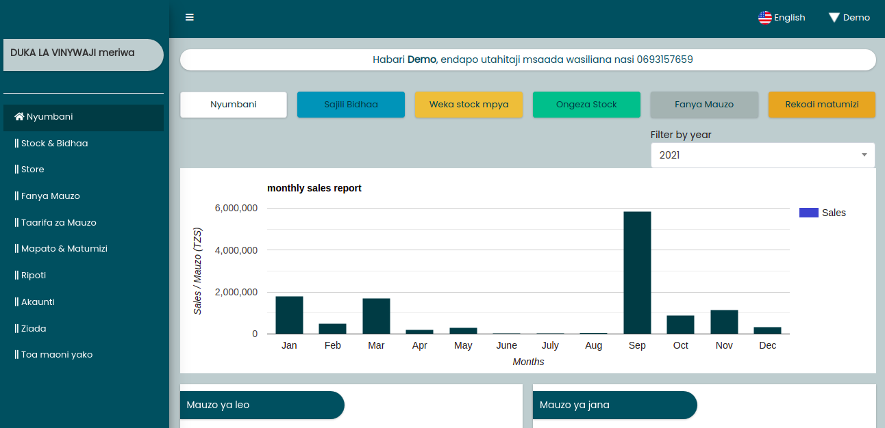 Ripoti za mauzo, bidhaa zilizopo stock, matumizi n.k, zote zinapatikana muda wowote, hii itarahisisha kufahamu mwenendo wa biashara yako kila siku pasipo kufika duka